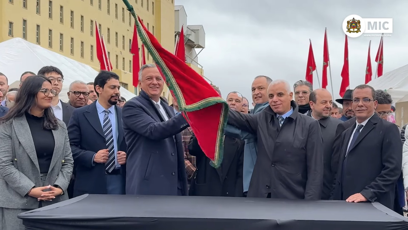 La ceremonia de lanzamiento se celebró en presencia del ministro delegado encargado de Inversión, Karim Zidane, de la directora de desarrollo comercial de EUWEN TEXTILES, Cecilia Liu, del presidente del Consejo Regional de Fez-Mequinez, del gobernador de la provincia de Moulay Yaâcoub, así como de numerosos actores económicos.